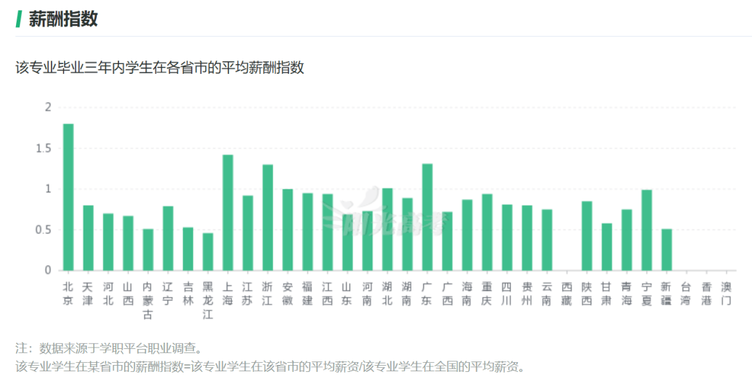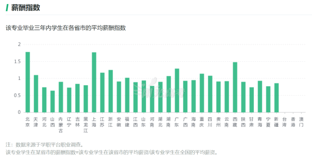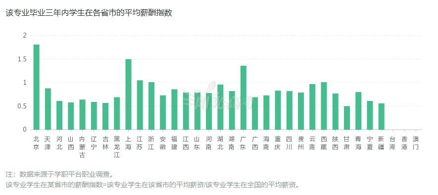 从阳光高考的信息来看,该专业毕业三年内的平均薪酬指数基本在8k以上,在北上广等一线城市的平均月薪普遍达到1.2万元以上。