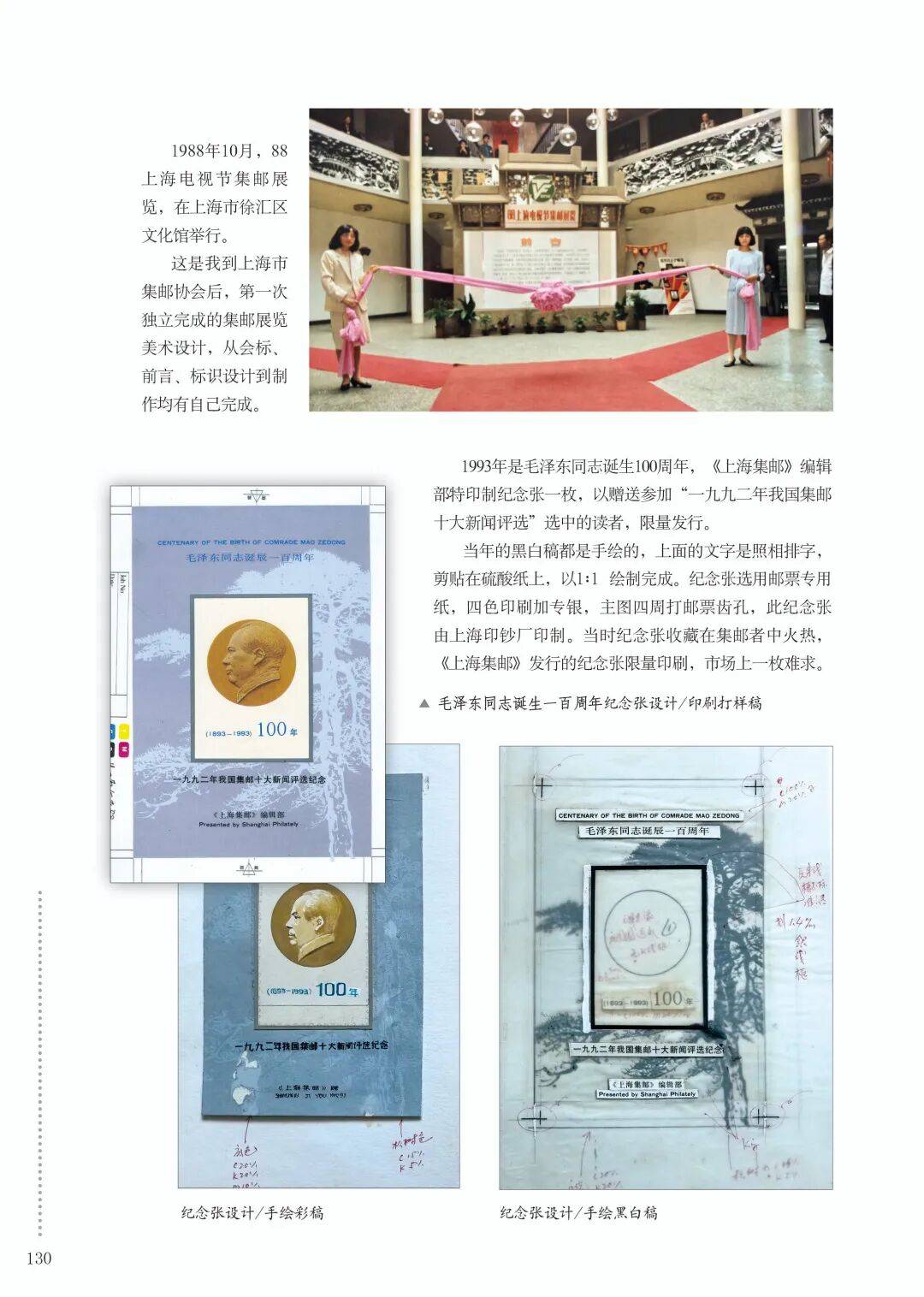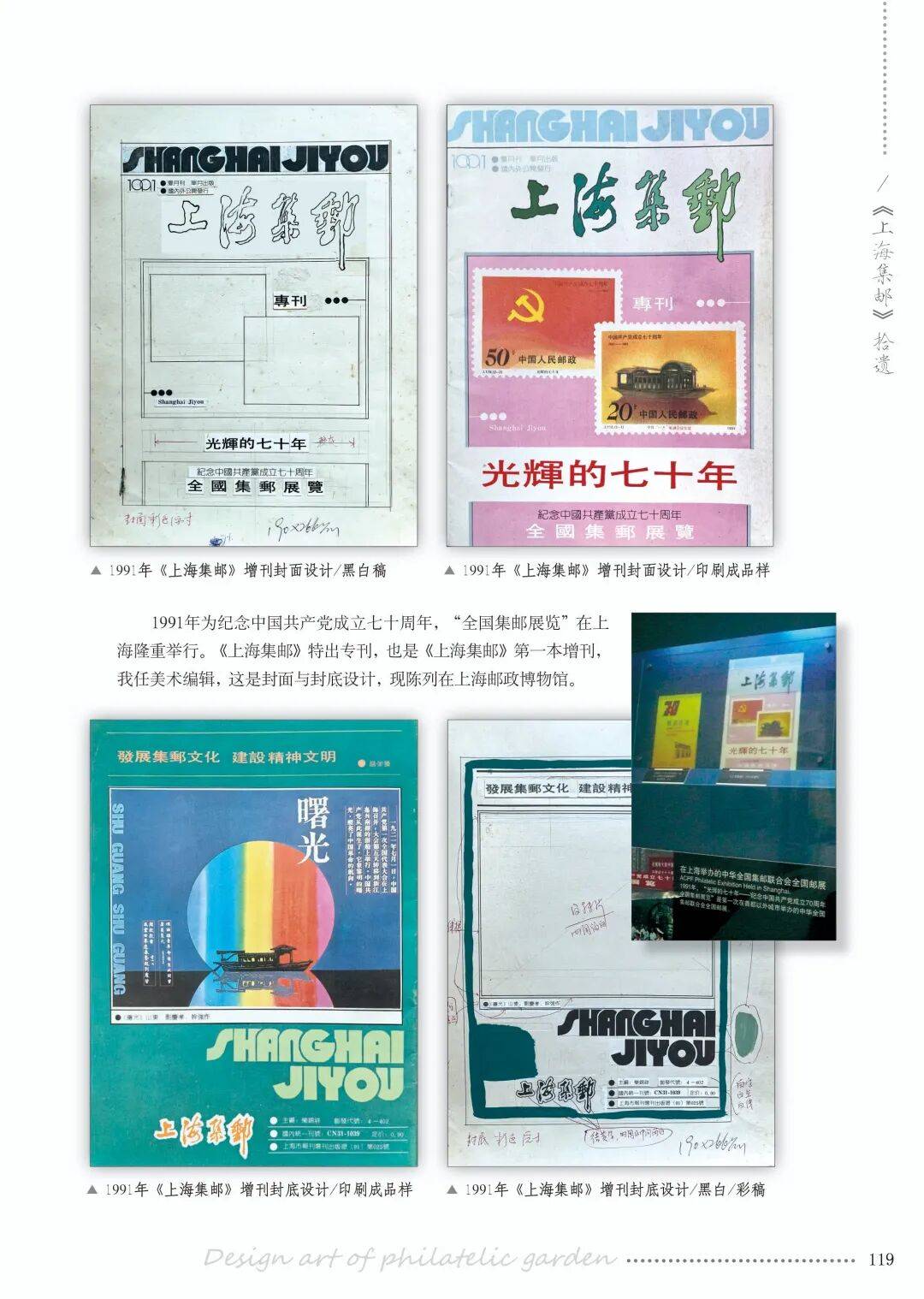 其中弥足珍贵的,1991年为配合中国成立70周年,“光辉的七十年——全国集邮展览”在沪举办,《上海集邮》特出第一本专刊,续篇中收录了他为专刊设计封面和彩页的黑稿与彩稿原件,及他为“光辉的七十年——全国集邮展览〞设计的宣传海报成品样。《上海集邮》专刊被上海邮政博物馆收藏与陈列。